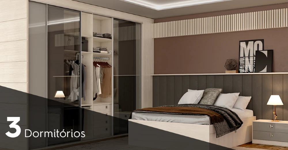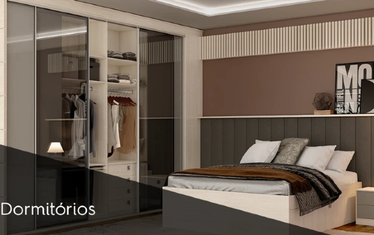 O tradicional padrão Saara combinado com os acabamentos Cinza Urbano Brilho e Reflecta Prata trazem harmonia para os ambientes. Para completar, novas opções de cabeceiras estofadas, novos tecidos e tamanhos editáveis.