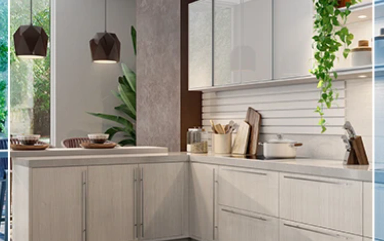 Um dos nossos grandes lançamentos é a mudança nas dimensões dos armários aéreos. Para aumento do espaço, os armários passaram 297 mm para 338 mm de profundidade e padronização na altura. Além disso, estes móveis oferecem flexibilidade, podendo fazer parte de projetos de diversos ambientes, seja cozinha ou um dormitório, por exemplo.