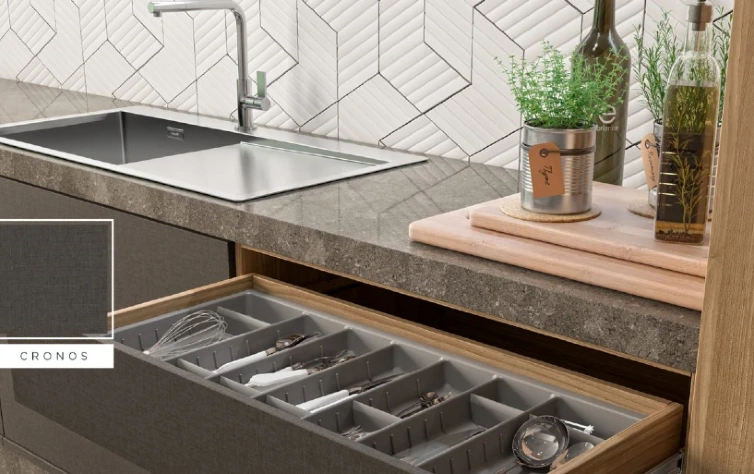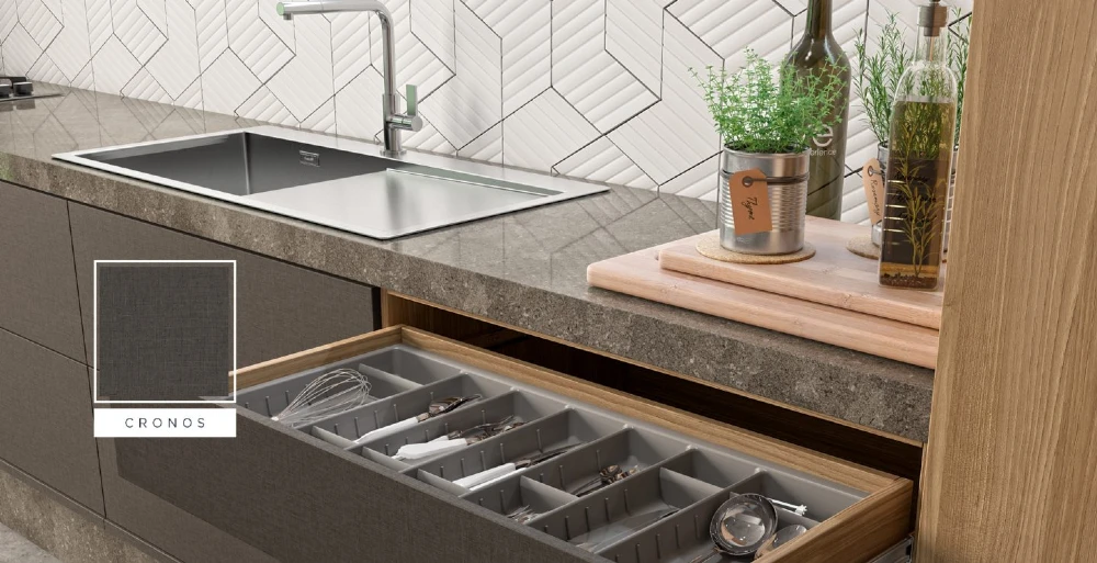 Mas não foram somente as pedras que inspiraram nossos lançamentos. Nos últimos tempos, os tecidos deixaram de fazer parte apenas dos estofados e ganharam força na decoração de interiores, a partir de suas texturas. E por que não trazê-las para o mobiliário? Esse questionamento inspirou a Italínea a criar o padrão Cronos.